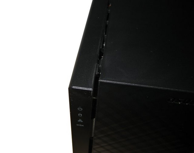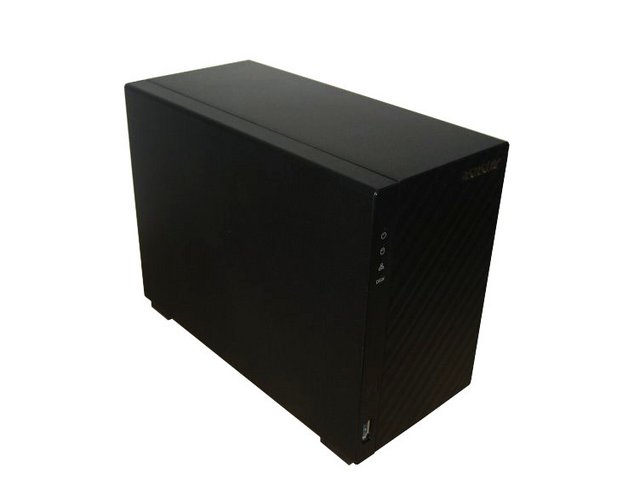The ASUSTOR AS3202T is constructed on a steel frame, while its shell that covers the remainder of the sides of the system is composed of black plastic.The textured plastic is reasonably resistant to fingerprints and scratches.