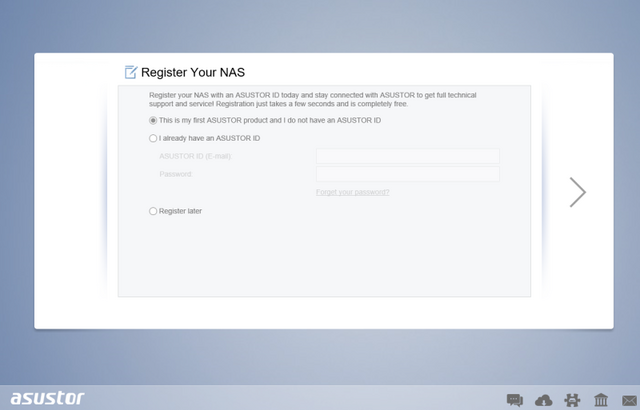 This is not all! After these initial steps will be completed, we will be asked to create an ASUSTOR ID or enter up the credentials in case we already have one available.