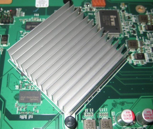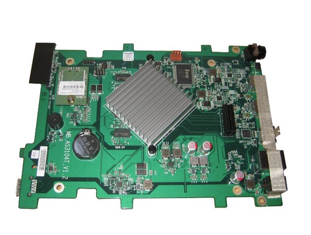 The Intel Celeron 1.6GHz Quad Core (burst up to 2.24 GHz) CPU is located right in the middle and it has a small heatsink for passive cooling. There is a lot of free space on the motherboard as there isn't any need for a lot more in a device like this.