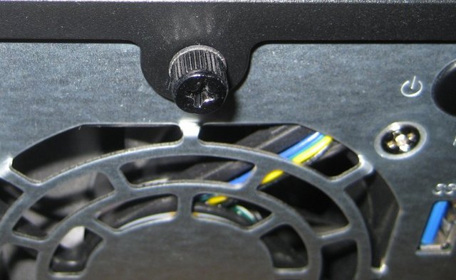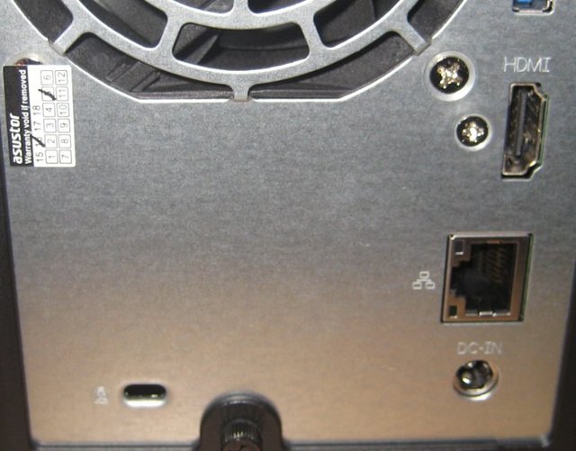 What we have at the back of the system is an extremely simple array of connectors.All two HDD bays are cooled by a single 70mm fan located in the back.A Kensington port is also available with the unit.