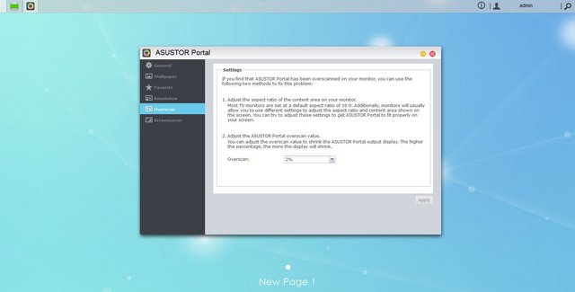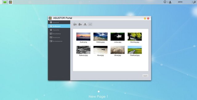 ASUSTOR Portal is the ADM application which is in charge of the HDMI interface; from here we will be able to adjust General options, change current Wallpaper, adjust Favorite applications on the list, screen Resolution and so on.