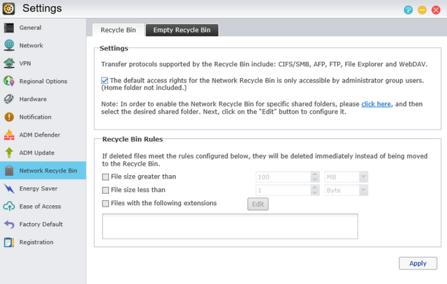 Recycle Bin options can be configured next and here we do also have the option to clear its current contents.