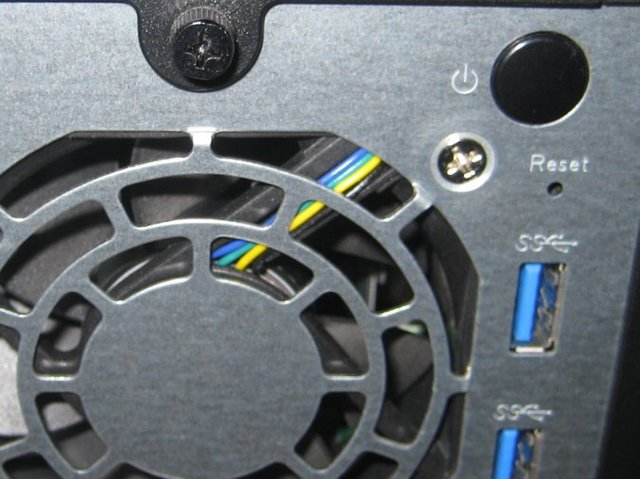 A closer look at the interfaces will reveal the power button which on this model is placed on the back side of the chassis, but also the Reset button hole.Further down we do have two another USB 3.0 ports.