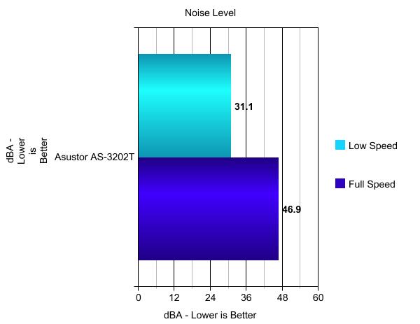 The Asustor AS3202T is almost silent when idle.When you load the drives the fan spins up to counter the rising internal temperatures.You certainly wouldn't notice this device running against the noise of a standard desktop computer,for instance.