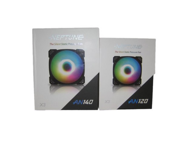InWin sent over a triple-pack SKU of the Neptune AN120 and AN140 fans which understandably comes in a larger, product box with a plastic wrap over it. The fans come in cardboard blister inlay packaging that will further protect them during shipping and handling. The packaging design adopts a predominantly black and white color with the product name on the front to go with a render of the specific fan color inside. There is a picture of the fan illuminated in multiple colors to signify the addressable lighting solution. A ghosted X3 in the left corner cover how many fans are inside.