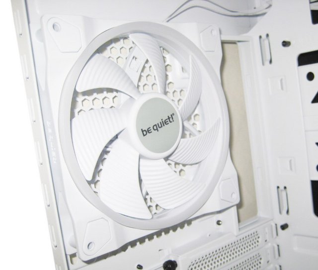 Behind the dust protection panel, you will find three retail-grade Light Wings 140mm fans. Due to the FX bit of the name, these are Light Wings BQ LIW-12025-MR-PWM fans and are already connected to the hub, which is very nice. The user can install up to 420mm radiator on the front. Also, there are three cutouts facing the side of the fans. These are there to pass the fans’ cables for further routing and connectivity.