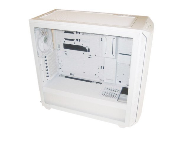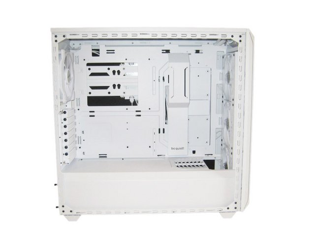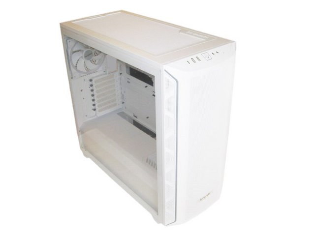 Common features of the Shadow Base 800 (DX/FX) series are a heavily perforated front panel and fans with a more efficient geometry, similar to the Pure Base 500. But they still stand their ground in the midi-tower category with dimensions of 550 × 247 × 522 mm (including the stand), even though they are already at the upper limit. Today we are focusing our review on the white window version of the Shadow Base 800 White FX variant.