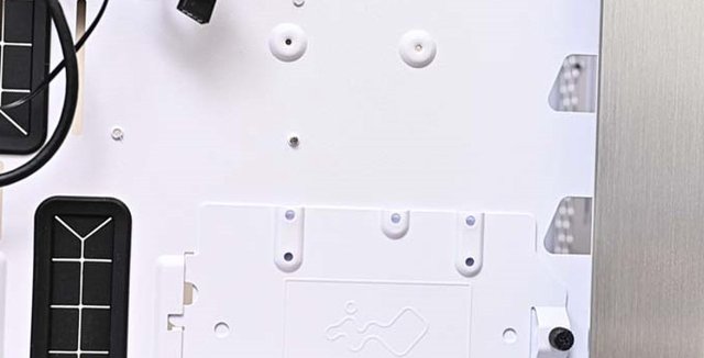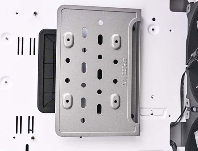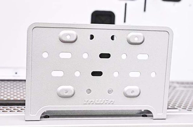There are two metal plates with complete lines and 2.5-inch brackets on the accessories, which can be optionally installed. The location can be installed on the right side or below the motherboard. As for power-supply clearance, the 180mm limit listed by In Win provides fan clearance: without bottom fans, users can place any power supply up to the full interior length of the bottom panel (about 460mm).