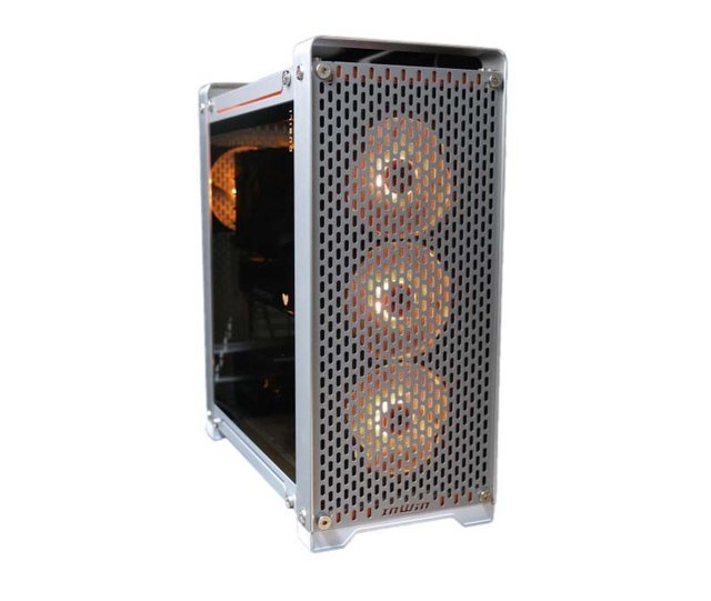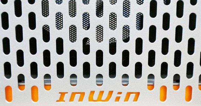 The upper and lower interior of the panel are decorated with orange components, and the word InWin is just highlighted below.