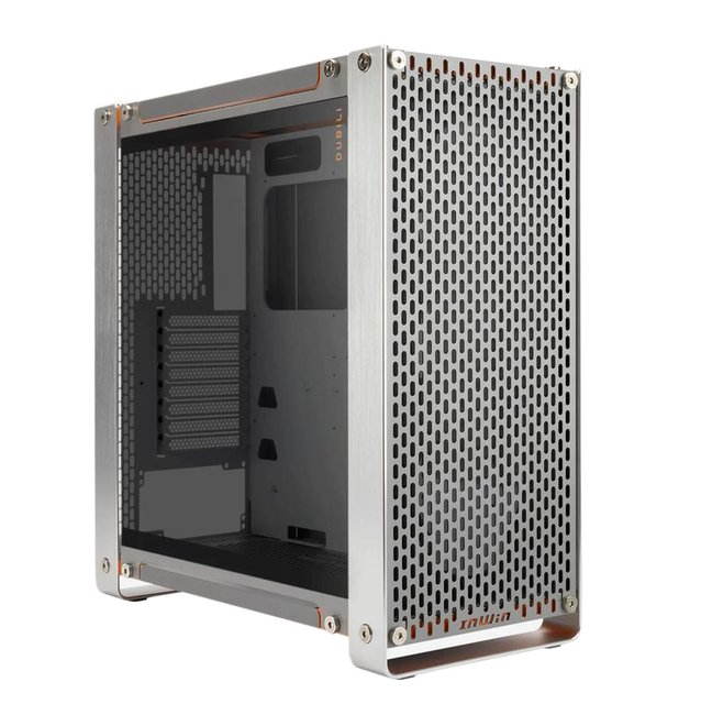As much as custom builds are really cool, I really appreciate it when a company goes out to do something cool and unique in their space, and InWin really blindsided me with some of the coolest ideas I've seen. The coolest concepts I saw form InWin revolve around what the company calls the iBuild iShare product line, and it's all about building your own PC starting even with the case itself. The company wants to make it easier even for beginners to build their own PC, but also provide enthusiasts a way to create something a little wilder or more inventive. There are a few lines that are part of this concept: POC, ModFree, and Dubili. Dubili is potentially the least customizable and more streamlined of the series, but it's also the most premium. These are large, sturdy cases made from premium materials including aluminum, SECC steel, and tempered glass. These cases come in two versions, one being gray and orange and the other being gold, and they both look and feel premium. The design concept of Dubili is quite interesting. This case adopts a modular concept in its design. The material part is made of aluminum alloy (4mm), tempered glass and SECC galvanized steel plate. It is a high-vertical case and can support up to E-ATX motherboard, 160mm CPU cooler and 430mm graphics card.