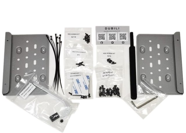 In terms of the bundle, we will find plastic feet, rubber pads, screws, scratches, a card holder and trays that will allow you to install different things, like SSDs for example.