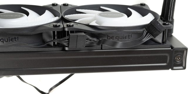 Connectivity is PWM, and in this generation, be quiet! has put more care into the organization of the kit, with shorter cables that can be connected to each other, but where all the wiring for lighting and power is unified. We've already seen this system in another of its recent kits, the be quiet! Silent Loop 3. This connector ends in an extension cable that divides between ARGB connectivity, with a "Y" input and output, and a unified PWM connector for all three fans. This makes cable management much easier, as everything stays neatly organized.