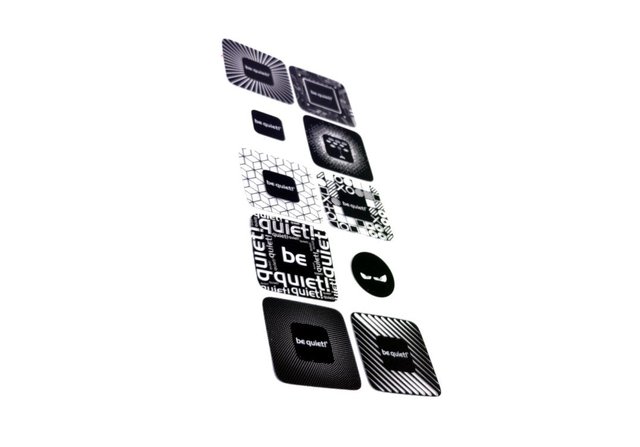 This model stands out with its interchangeable films: around ten plastic sheets to be inserted manually into the pump unit cover to obtain a static pattern. These films are placed on the white surface and secured with the included cover. Most designs incorporate the be quiet! logo. The Space Invaders design is one of two films that do not feature a manufacturer's logo.