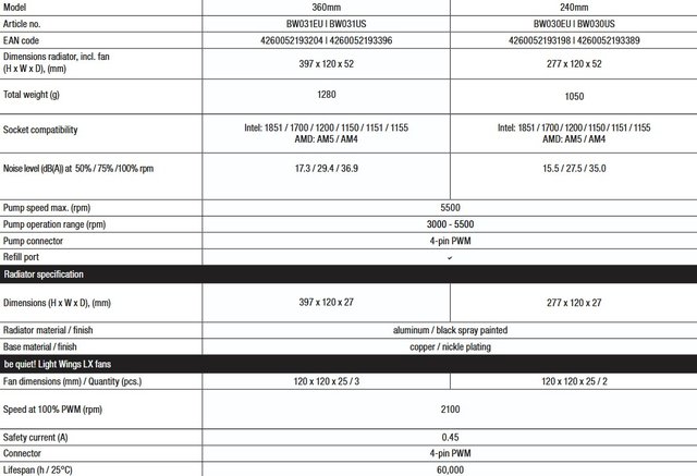 This isn’t just a refresh – it’s a rethink of what a mainstream all-in-one cooler should be, blending the brand’s signature silent performance with a striking new design, modular customisation, and full ARGB flair. It’s loud in looks but quiet where it counts. The price tag doesn’t go far, as you’ll have to pay €84.90, €99.90 and €104.90 without lighting in 240/280/360 mm respectively. The LX version will cost a little more: €99.90 for 240 mm and €119.90 for 360 mm.