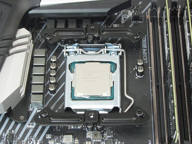 It's time to proceed with all the installation to be quiet! Pure Loop 3 LX 360. The installation kit is composed of a backplate in aluminum. It must be prepared in advance with screws and O-rings. Its consolidation to the motherboard is done with four spacers on the "socket" side. Next, two mounting bars are installed on each side of the socket.