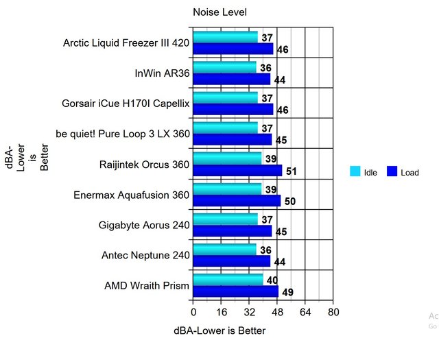 Our final test is a sound check. In idle, the be quiet! Pure Loop 3 LX 360 is quiet. The pump is very quiet indeed and we detected none of the ticking noise you get with some All In Ones. Under stress, it's still nice, especially considering the good temps. Even with three fans, we found the be quiet! Pure Loop 3 LX 360 to be very agreeable in terms of acoustics.