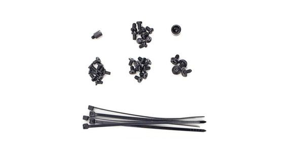 You will find a module for vertical mounting of graphics cards, an assortment of black screws alongside a good number of zip ties with the chassis.