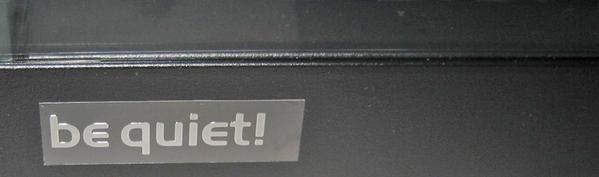 On the facade, at the bottom near the foot is the be quiet! logo.