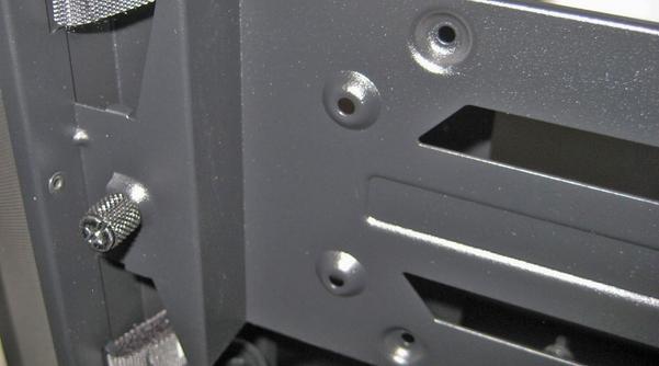 By default, the power supply will be mounted vertically at the bottom of the case. It rests on small raised areas molded directly into the steel of the case. However, it will be possible to mount the power supply at the top of the case by moving the storage slots. These can be positioned at the bottom of the case, freeing up the top power supply slot. The power supply can be 200mm long, and with a little patience, it's also possible to use models with connectors on the side.