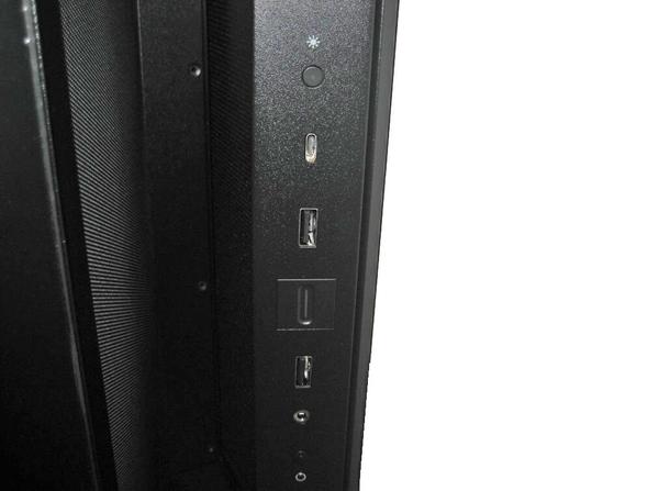 On the front, the front panel is located on the vertical stripe on the right with the following connections available: