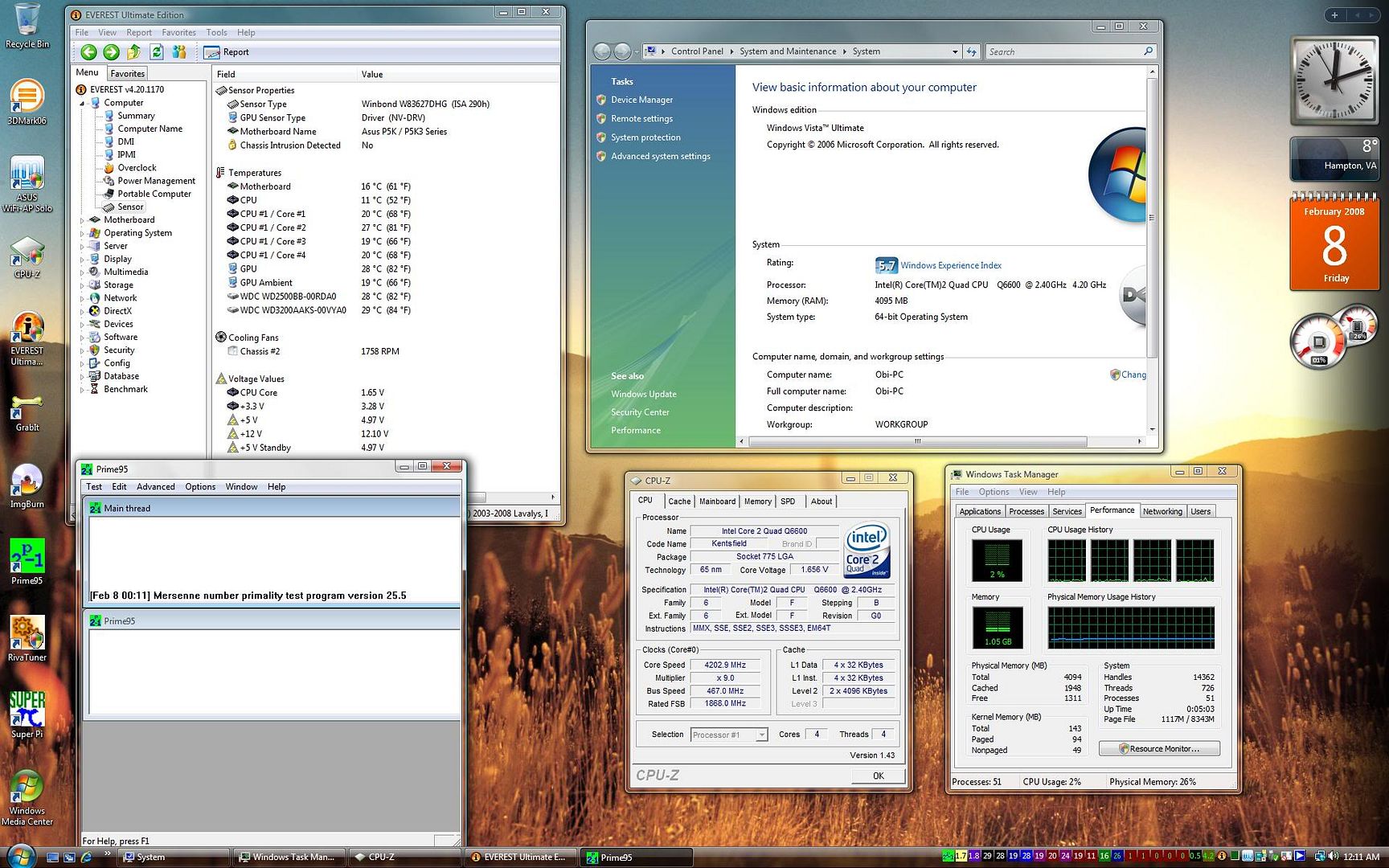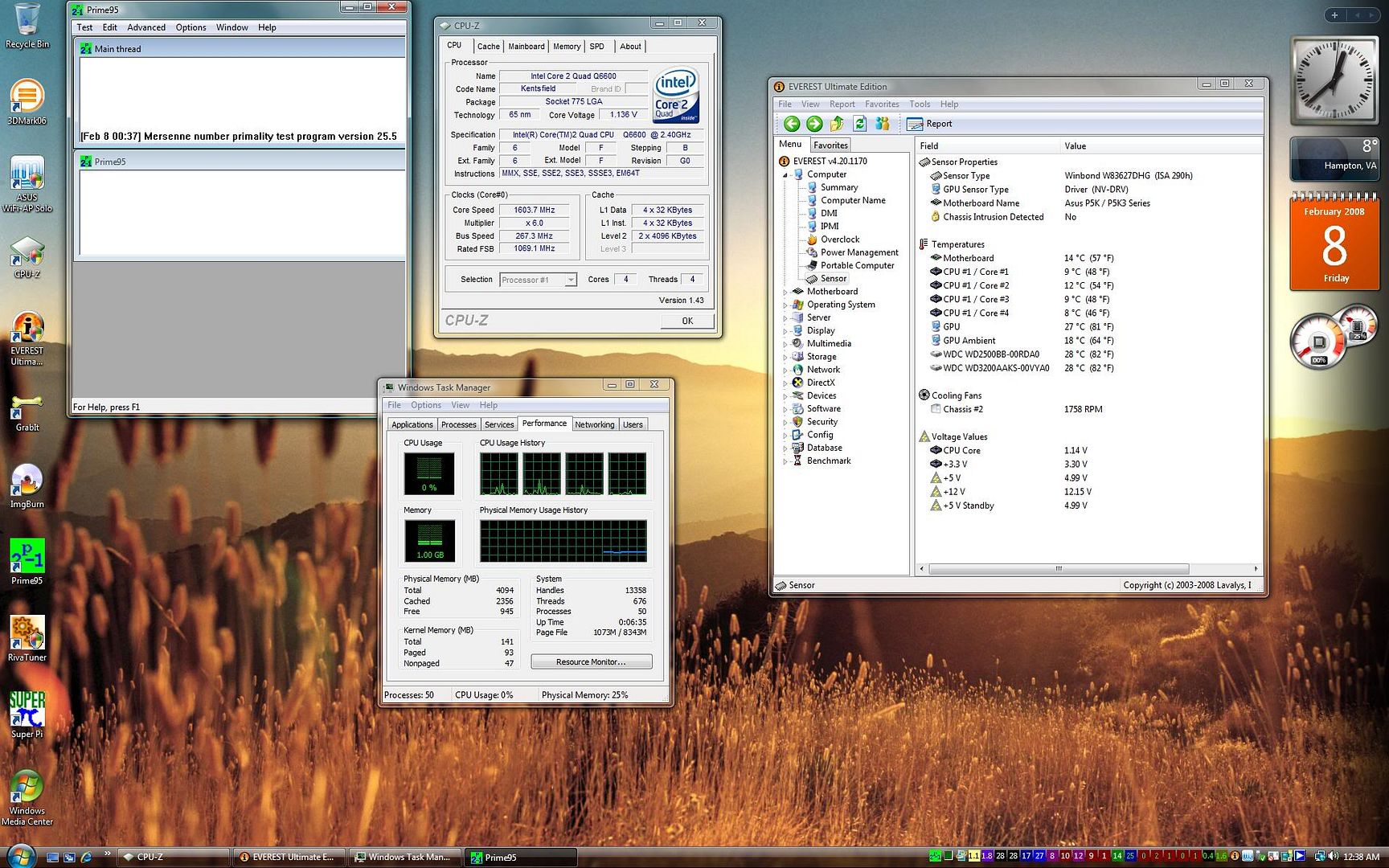 he he he, after some more tinkering, look at my load temps!!! i think am just gonna run this 24/7 because the temps are so low, doesnt even break 50C with a voltage of 1.57 Volts. idle is 23C, Ambient is 21C...he he he am happy now. if the Q6600 dies from running 1.57V 24/7, then it an excuse to get the Q9550!!