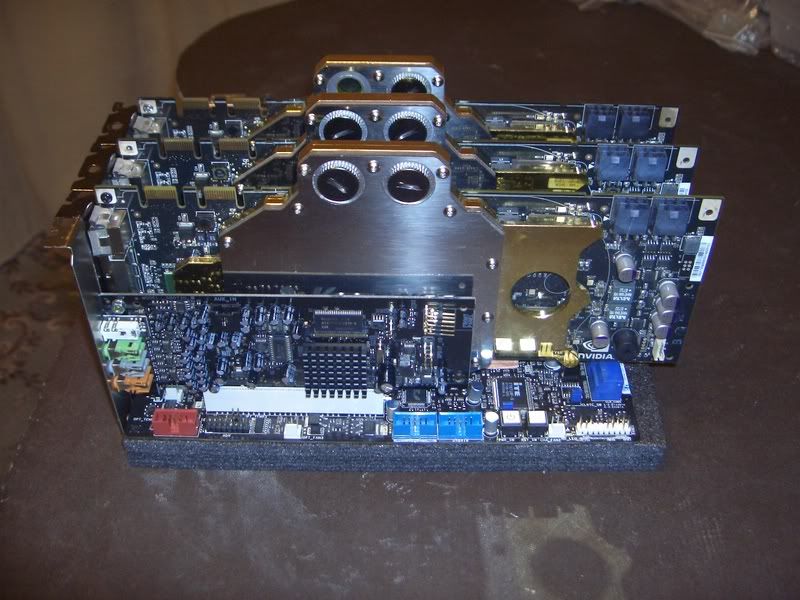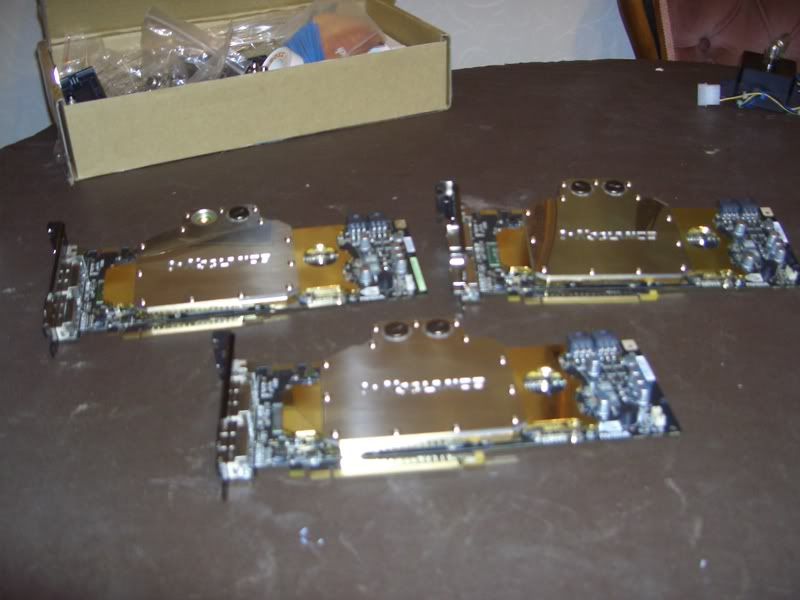Amazing job on creating your own waterblocks. Those look as good as the ones you can buy. What are your temps with everything in one loops (preferably load temps)? Are those 8800GTX cards or 8800Ultra cards?