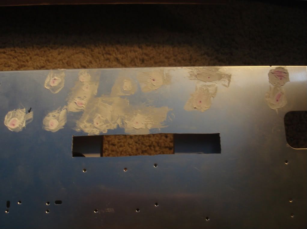Filling in the mounting holes I won't be using, not quite flat enough yet so I am leaving a second layer overnight and sanding in the morning, using 320grit sandpaper.
