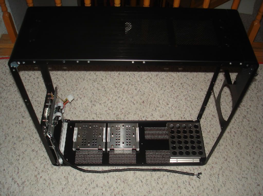 Her naked, I ended up taking out all the hard drive mounts and psu support plate on the bottom also since I won't be mounting any drives down there, and I prefer the looks without the psu support bracket.