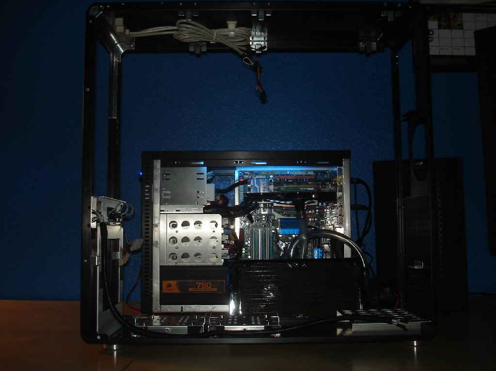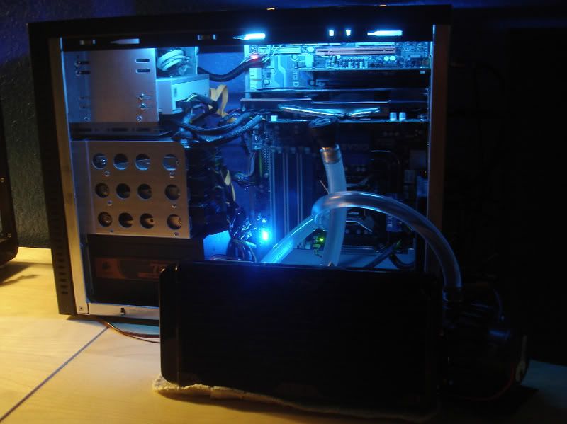 Here's my old rig, temps were horrible with the radiator mounted on top, so I took it out and dropped temps around 13c. ( 71 load now with my overclocked i7 920 ).