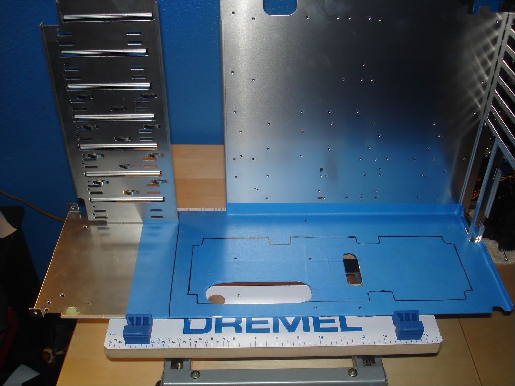 I am not a big fan of cutting out my side panels to mount the radiator sideways, so I decided to cut the mid-plate and mount a triple rad there.